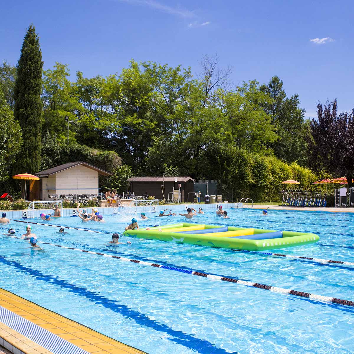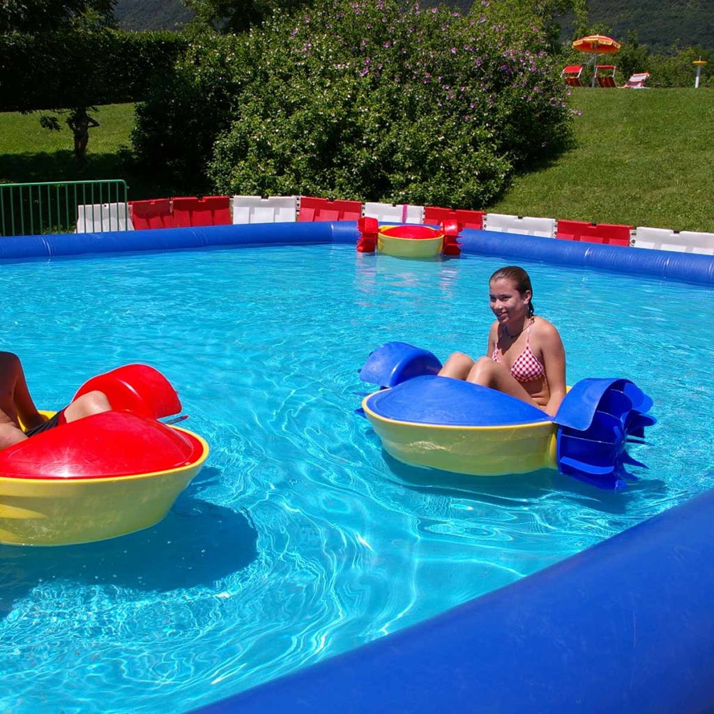 ● Vasca di 33mt per giocare con gli amici, dotata di materassoni galleggianti e reti pallanuoto